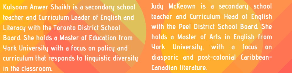We have been talking, thinking, learning and working together since 2001 and this resource portal is our attempt to share our vision of English education with other English teachers. We are passionate about English curriculum and believe it its potential to decolonize minds–as well as contribute to the construction of a society committed to social, racial and economic justice.